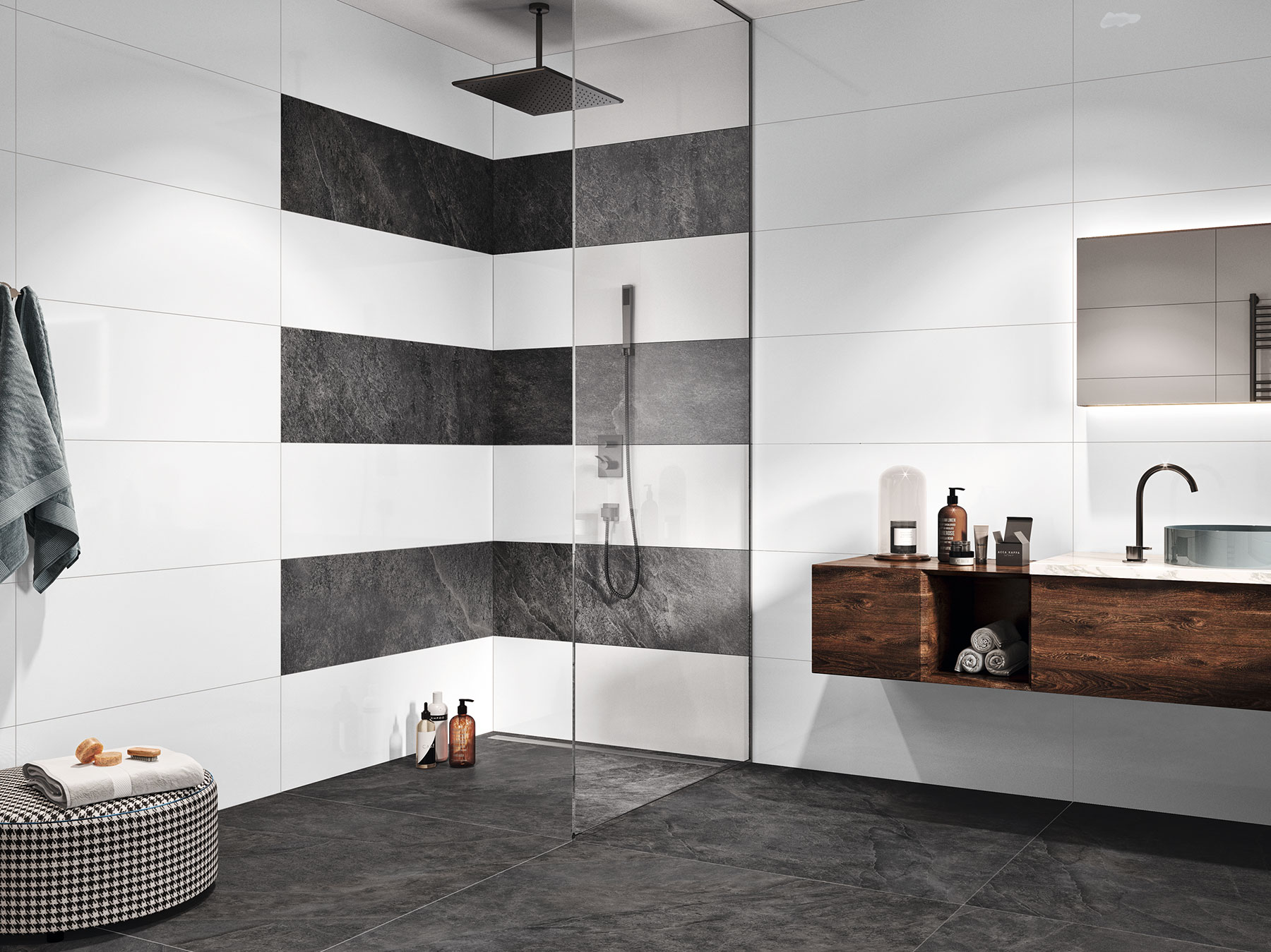 Mosaïques ludiques, dalles à l’aspect marbre raffiné ou couleurs unies classiques – les dalles ouvrent d’innombrables possibilités de décoration des sols et des murs de chaque pièce. La grande variété de matériaux, de formats, de couleurs et de décors répond aux exigences individuelles les plus élevées. Notre vaste gamme de panneaux répond à tous les goûts. Nous nous engageons en outre dans la campagne « La céramique est unique » de l’Association suisse du carrelage ASC et misons ainsi sur la qualité et la diversité de la Suisse.